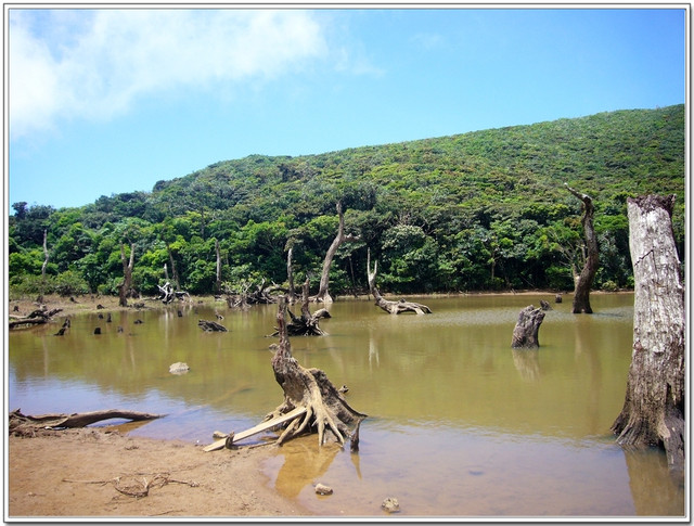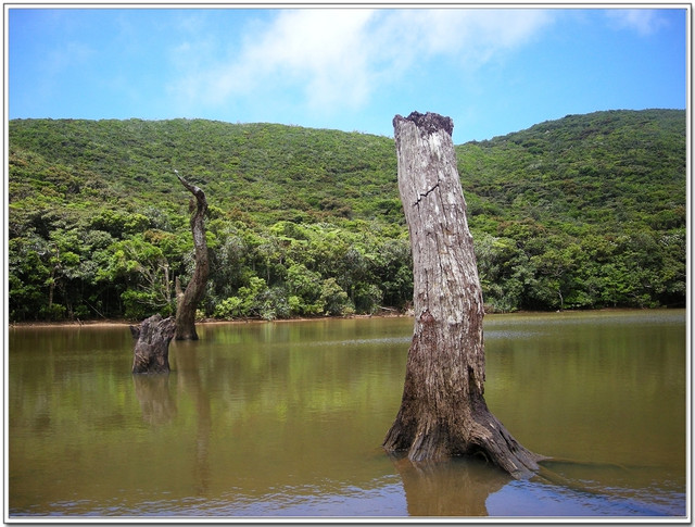 但許多枯木倒在湖中形成倒影,也多了幾分蕭瑟的味道。