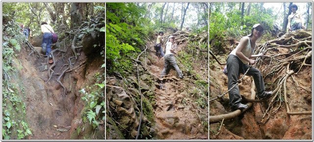 接著是不斷爬坡、攀繩及手腳並用的路程,